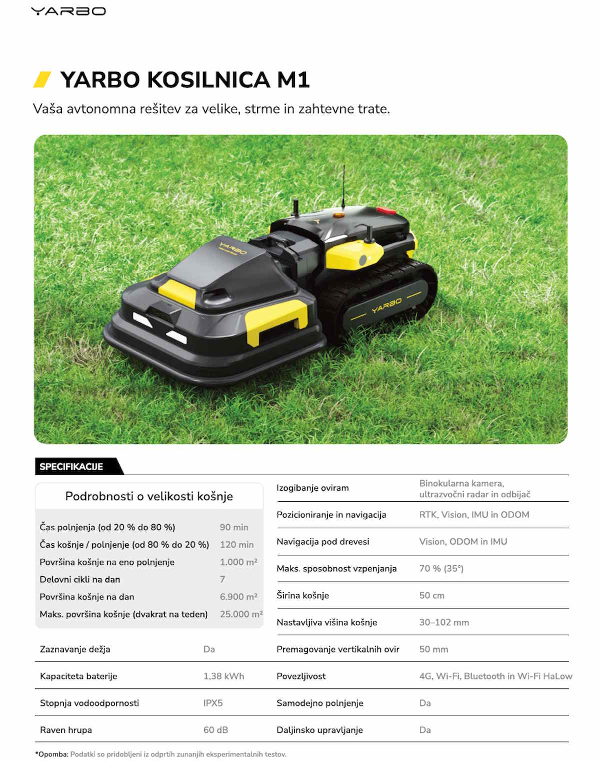 YARBO ROBOT - KOSILNICA M1 TEHNIČNI PODATKI